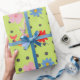 Adorable animals and flowers green party wrapping paper