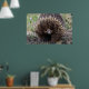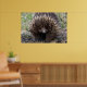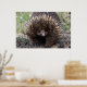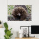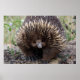 Beautiful souvenir photo of an adorable native wild Australian echidna, similar to a porcupine or anteater. Photograph shows its brown-yellow spines and very cute face with beady eyes and long snout.