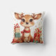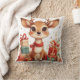 A charming illustrated fawn sits among colourful gift boxes and tiny Christmas trees, wearing a floral headpiece. Ideal for holiday cards, family themes, or festive product campaigns.