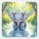 Adorable Baby Elephant and Reflection Square Sticker