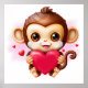 Adorable Baby Monkey Holding a Red Heart Poster