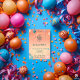 Celebrate your child's birthday with this adorable balloon-themed invitation featuring a sweet baby elephant. Personalise it with your child's name, event details, and a custom message to make the celebration truly special. The whimsical animal design and playful accents add a fun and joyful touch, perfect for a memorable birthday party.
