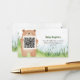 Share your baby registry details in an adorable way with this woodland teddy bears picnic QR code card. Featuring a watercolor style bear holding a customisable QR code sign, standing in a lush green field. Perfect for baby showers or announcements, this card helps guests easily access registry information online.