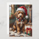 Adorable Bernedoodle Dog Cozy Knitted Santa Hat Holiday Card