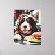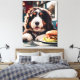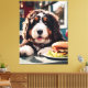 An adorable Bernerdoodle at the diner with a cheeseburger it has ordered AI generated art