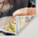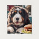 An adorable Bernerdoodle at the diner with a cheeseburger it has ordered AI generated art