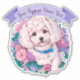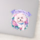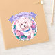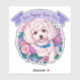 Adorable Bichon Frisé with Assorted Flowers Custom Sticker, a heartwarming and personalised creation designed exclusively for women and girls who hold a special place in their hearts for the charming Bichon Frisé dogs and the timeless beauty of assorted flowers. This delightful sticker features a loveable Bichon Frisé with bright, endearing eyes, an adorable face eagerly looking your way, and a sweet blue ribbon adorning its neck. It is surrounded by a beautiful array of assorted flowers, creating a heartwarming scene that captures the essence of your beloved pet's charm. To add a personalised touch, an elegant purple ribbon is provided where you can proudly display your cherished pet's name.
