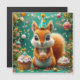 Charming squirrel wearing a festive party hat, surrounded by vibrant decorations and colourful cupcakes in a playful, cheerful setting.