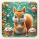 Adorable birthday Squirrel Square Paper Coaster