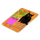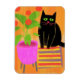An adorable black cat with green eyes sits with houseplants AI generated art