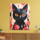 Adorable Black Cat With Pink Flowers Canvas Print
