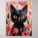 Adorable Black Cat With Pink Flowers Poster