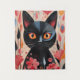 Adorable Black Cat With Pink Flowers Tapestry