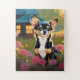 Introducing our delightful "Adorable Black Chihuahua Puppy with Wildflowers" puzzle! This charming puzzle captures the innocence and curiosity of a cute Chihuahua puppy as it explores a field bursting with colourful wildflowers. Printed in vivid and full colour, this puzzle promises hours of enjoyable entertainment and makes for a heartwarming gift choice.