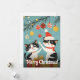 Share holiday cheer with this cute Christmas greeting card featuring two playful black and white cats, one wearing a Santa hat. Surrounded by hanging ornaments, pine branches, and wrapped gifts, the teal background adds a festive touch. The "Merry Christmas!" message completes the design, making this card perfect for cat lovers and anyone who enjoys charming holiday illustrations.