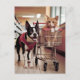 Adorable Boston Terrier and a Cat go Shopping Postcard