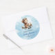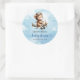 Celebrate your little aviator’s upcoming arrival with this adorable boy baby shower sticker featuring a cute teddy bear pilot flying a vintage airplane. Designed in a charming blue and brown color palette, this aviation-themed sticker adds the perfect touch of sweetness and adventure to any baby shower décor. Use it for favor bags, envelopes, gift packaging, party décor, thank-you tags, or diaper raffle prizes to instantly elevate your event’s theme.