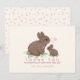 Thank your guests for their thoughtful gifts with these adorable, hand-painted mama and baby cottontail bunny rabbits sitting in a patch of clover while emitting floating pink hearts between them! The words "Thank You" and your custom name are in pink text . On the back of the card is a cute pink heart pattern. Shown here with an ivory coloured background which you can easily change to your favourite colour.