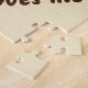 This adorable puzzle is the perfect size for kids and features a nature photo that captures a cute wild desert bunny sitting inside a large heart. The brown rabbit with his long ears is resting on a dirt path. The large heart shape surrounds the wild animal and is accompanied by the animal pun "Somebunny loves me" which can quickly be customised if you desire.