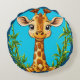 Adorable Cartoon Giraffe With Bamboo Round Cushion