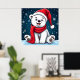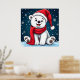 Adorable Cartoon Polar Bear in Santa Hat Poster