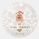 Adorable Cartoon Reindeer,Santa Hat,Glittery Bokeh Classic Round Sticker