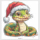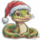 An artistically drawn snake with a detailed body, wearing a santa hat, radiating a captivating combination of charm, fantasy, and magical illustration artistry.