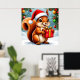 cheerful squirrel dressed in a Santa hat, holding a wrapped present. Perfect for seasonal greetings, Christmas themes, and festive decor designs.