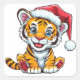 Adorable Cartoon Tiger Cub Wearing a Santa Hat Square Sticker