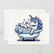 Adorable Cartoon Unicorn in a Bathtub Postcard