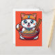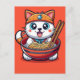 Adorable Cat Enjoying Savory Ramen Noodles Feast Holiday Postcard