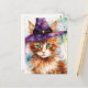 Adorable Cat in a Witch Hat Watercolor Postcard