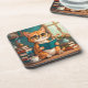 Adorable Cat Wearing Glasses Reading a Book Coaster