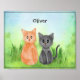 This design shows two adorable cats, one is orange and other is grey. They are just so cute they're gonna make your kids more happy. Ideal for any child. Easy to customise, by clicking to edit or to customise further, you can replace the cats, resize and you can also select another background. Customise it with the name of your child or a quote your child likes. Enjoy!