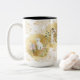 Adorable watercolor cats on gold look geometric and floral background. Cute cats - - makes you smile when you drink your coffee. Inexpensive gift for anyone who loves cats. 15 oz mug.