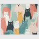 Adorable Cats Playing Neutral Pastel Pattern Wrapping Paper
