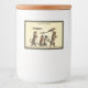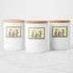 This custom label for a food jar has a pale yellow background with a brown border with two cats and two kittens all brown and white holding umbrellas walking in the falling snow. Customise your text with the template.