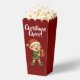 An adorable Christmas elf in green outfit and red hat, holding a gift box with a cheerful smile. Perfect for wrapping paper, holiday gift, seasonal collections, Christmas products, supplies and gifts.