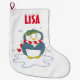 Our adorable little Christmas Penguin, on these awesome Christmas stockings. Names can be personalised. Click customise to change background colour if you wish.