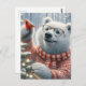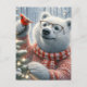 Adorable Christmas Polar Bear and Cardinal Tree Postcard
