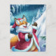 A cute Christmas red fox dressed on a Santa suit sings in the mountains in a watercolor style AI generated art