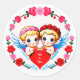 Adorable Cupid Angels Holding Heart Classic Round Sticker