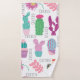 Adorable custus and leaves pattern cute pink blue bath towel set