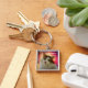 Portrait of a cute and adorable calico cat with green eyes, pink nose, and multicolor fluffy fur. The beautiful pet looks straight into your eyes. A digital painting from a photograph. Elegant square keychain. Customizable. You can change the image and you can change or delete the template name ELIZABETH. You can use the image of your own cat instead of the template image if you wish. You can transfer this design to a variety of other products of your choice. Please, use the "Edit Design" or the "Personalize" (as the case may be) button to adjust the picture to the shape of the particular product. It will transfer you to the Designer Tool. Use the "Fit/Fill" option (right-side menu of the Designer Tool). You can scale, rotate, flip the image on the product template, and you can add some text of your own to it. You can also change the font type, color, size, etc. Just be creative, buy one, have fun, and be happy!