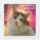 Portrait of a cute and adorable calico cat with green eyes, pink nose, and multicolor fluffy fur. The beautiful pet looks straight into your eyes. A digital painting from a photograph. Elegant and funny elegant dinner paper napkins for you. Customisable. You can change the image. You can use the image of your own cat instead of the template image if you wish. You can also change or delete the template text LIFE IS BETTER WITH A CAT. You can transfer this design to a variety of other products of your choice. Please, use the "Edit Design" or the "Personalise" (as the case may be) button to adjust the picture to the shape of the particular product. It will transfer you to the Designer Tool. Use the "Fit/Fill" option (right-side menu of the Designer Tool). You can scale, rotate, flip the image on the product template, and you can add some text of your own to it. You can also change the type, size, colour, and location of the font. Just be creative, buy one, have fun, and be happy!