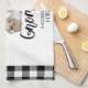 Adorable Cute Gnomes Black Buffalo Plaid Tea Towel