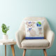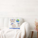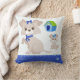 Add a cute touch to your home bedroom or nursery with this adorable puppy throw pillow. Pillow features a mummy dog with a baby puppy. Both dogs are wearing blue bows and the mum dog is wearing a collar. There's also a dog house in the background, a cross stitch pattern, and a dog paw print. Customise the pillow with your little girl or boy's first name.