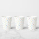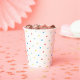 These paper cups feature a colourful rainbow polka dot pattern.