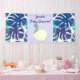 Adorable little baby dinosaur - still inside his egg! - decorates this Baby Shower banner. Jungle palms decorate the border. So cute it's really ridiculous. Blue, purple and green colours.