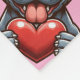 Colourful illustration of a happy dog holding a heart representing love and affection in a playful style.